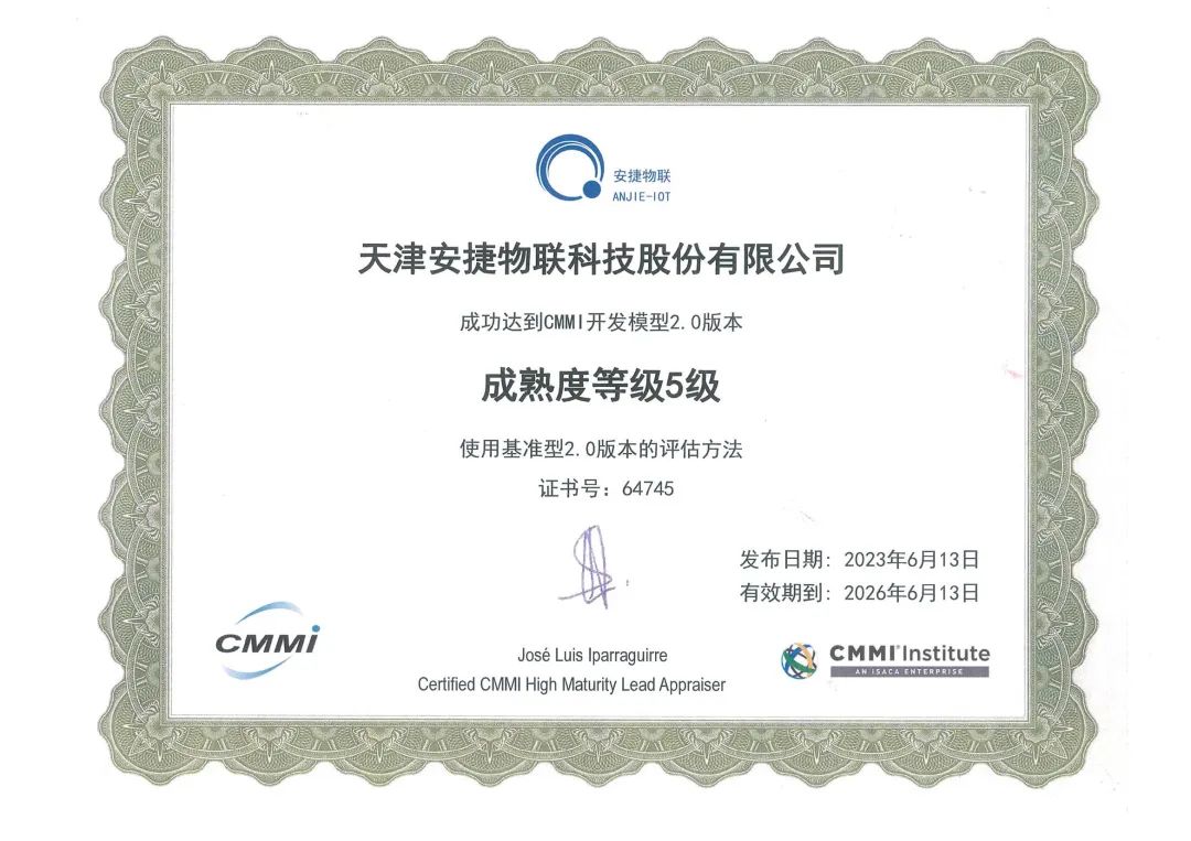 近日,今年会jinnianhui物联顺利通过全球软件领域难度最大、规格最高的软件开发能力成熟度认证CMMI 5,并获CMMI研究院ISACA颁发的CMMI 5 V2.0认证证书。